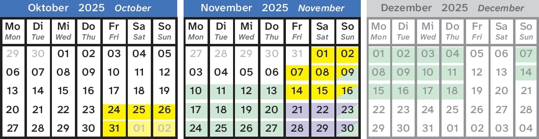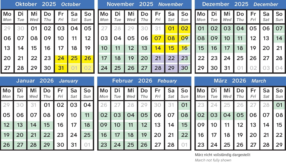 Einschränkungen vom 9.11.2025 bis 5.3.2026