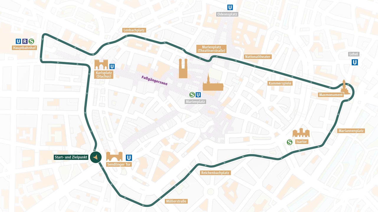 Die Tram startet am Sendlinger Tor und fährt über Isartor, Maxmonument, über die Maximiliansstraße, am Nationaltheater und Stachus vorbei wieder zurück zum Startpunkt. Der Ein- und Ausstieg ist AUSSCHLIESSLICH an der Haltestelle der „Brunnenschleife am Sendlinger-Tor-Platz“ möglich, da sich hier unter anderem das Kassenhäuschen für die Tickets befindet. Die Wartezeit bis zur Fahrt lässt sich wunderbar an den verschiedenen Ständen des Christkindlmarktes am Sendlinger Tor verbringen.